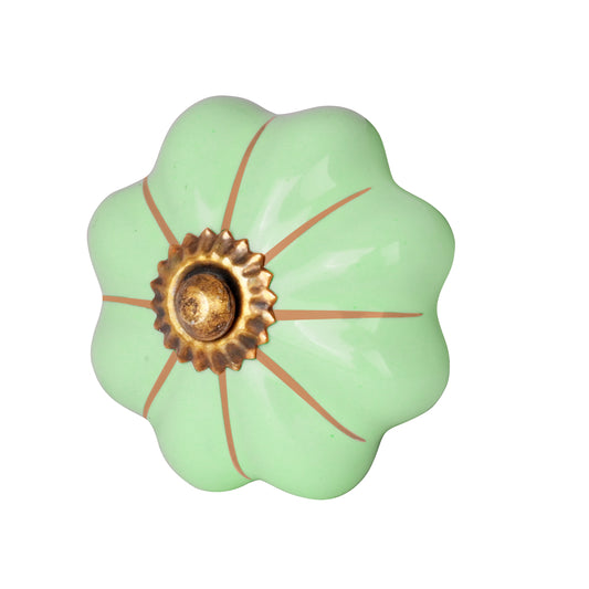 Handcrafted Green Gold Line Detailing Ceramic Drawer Knob | The Indian Aura