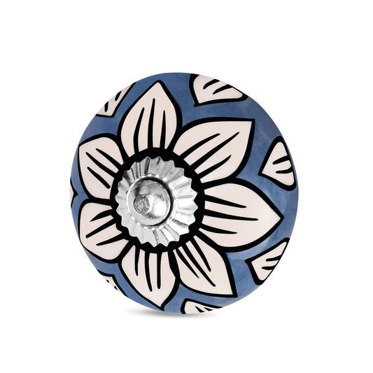 Flower-Shaped Ceramic Drawer Knob – Black & White | The Indian Aura