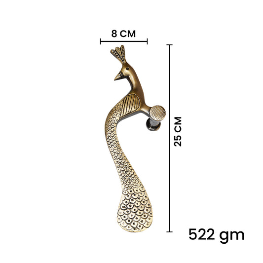 Handcrafted Brass Door Handle – Elegant Peacock Design (Left Turned)