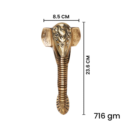 Ganesha Brass Door Handle with Golden Crown - Antique Dhanvantri Design