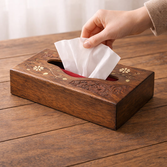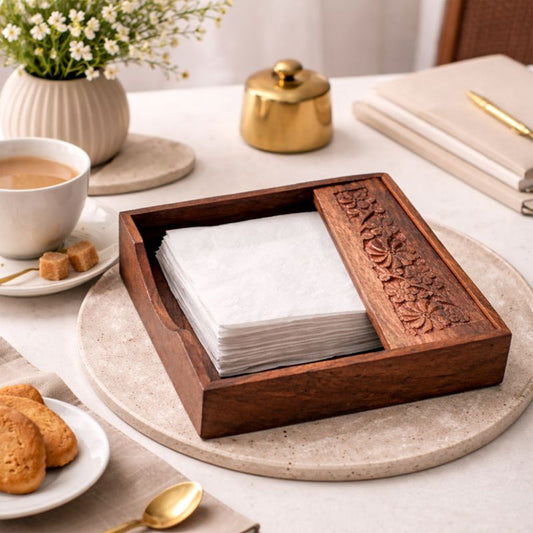 Handcrafted Wooden Napkin Holder with Carved Lid | Premium Table Accessory | The Indian Aura