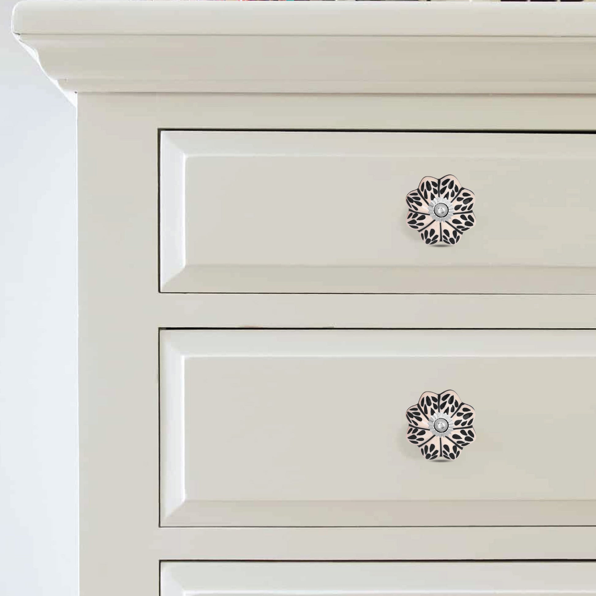 Crafted with meticulous care and attention to detail, our Flower Shaped Leaf Design Knobs are lovingly handcrafted by skilled artisans. Premium materials are chosen for their durability and aesthetic appeal, ensuring each knob is a masterpiece of quality and style. The intricate leaf design is meticulously applied by hand, adding a unique and charming accent to every knob. Enhance your living space with the timeless elegance of our handcrafted Flower Shaped Leaf Design Knobs, where every detail speaks of craftsmanship and beauty.