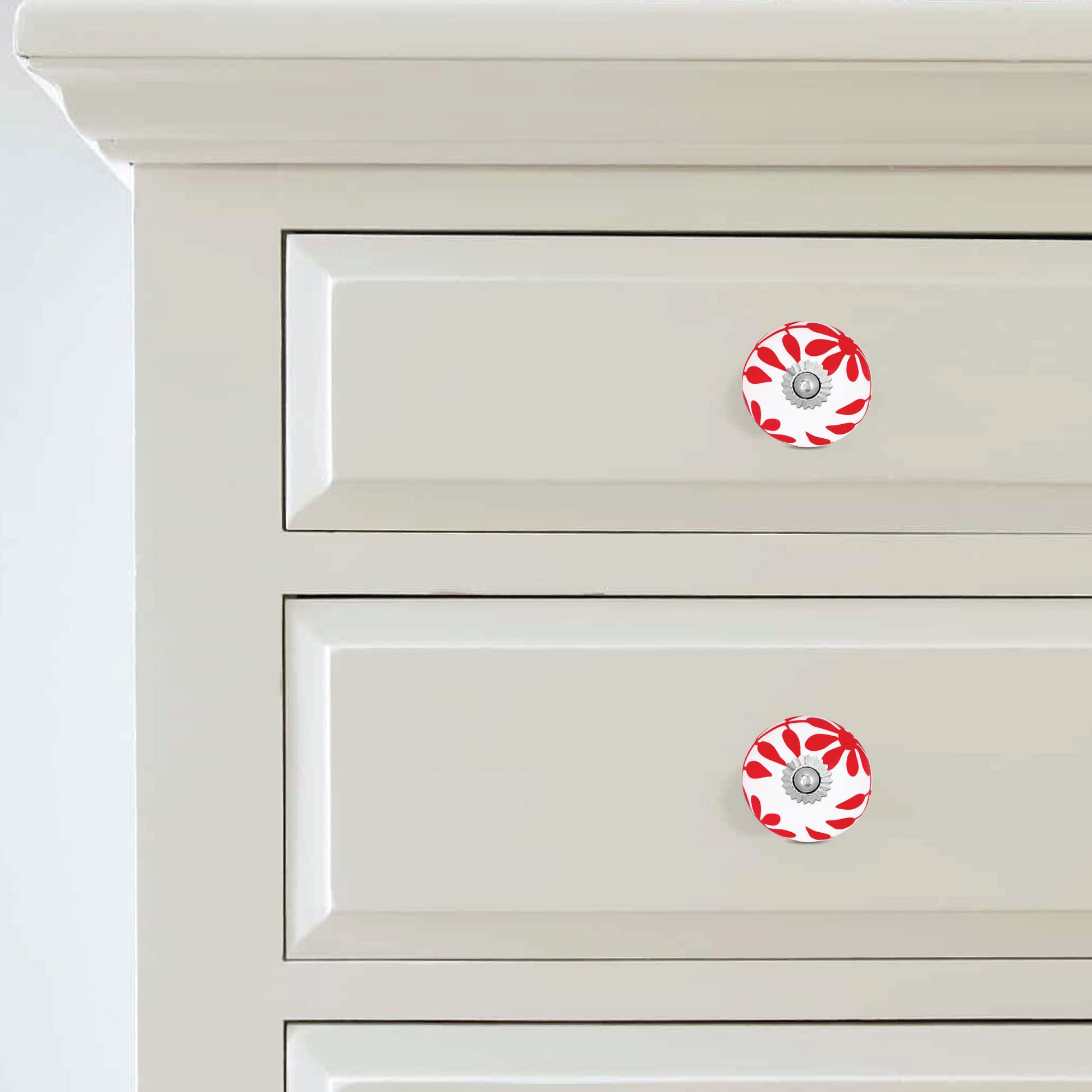 Vibrant Red Petal Ceramic Cabinet Drawer Knob | The Indian Aura