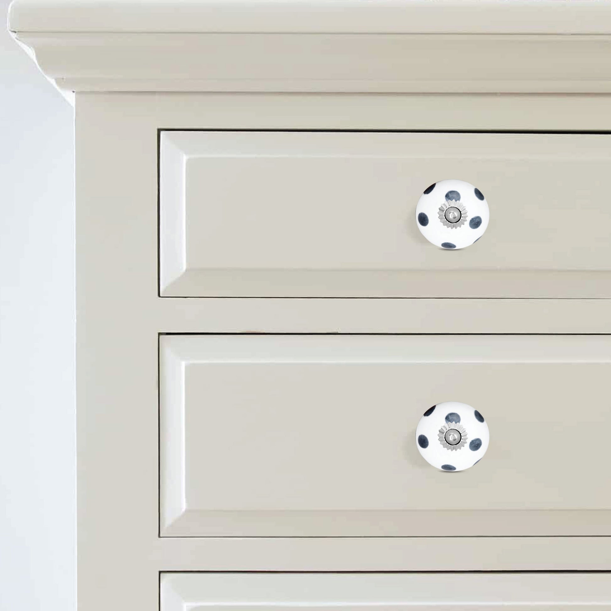 Hand-Painted White and Blue Dotted Ceramic Drawer Knob | The Indian Aura